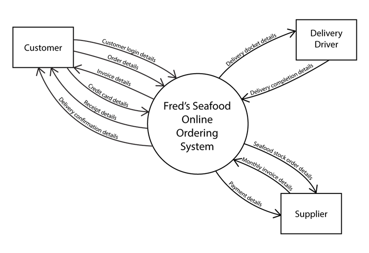 Scenario: You are designing a context diagram for “QuickBite,” a food delivery system.